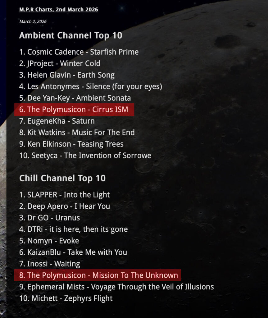 Moon Phase Radio has Cirrus ISM and Mission To The Unknown in their March top 10s!